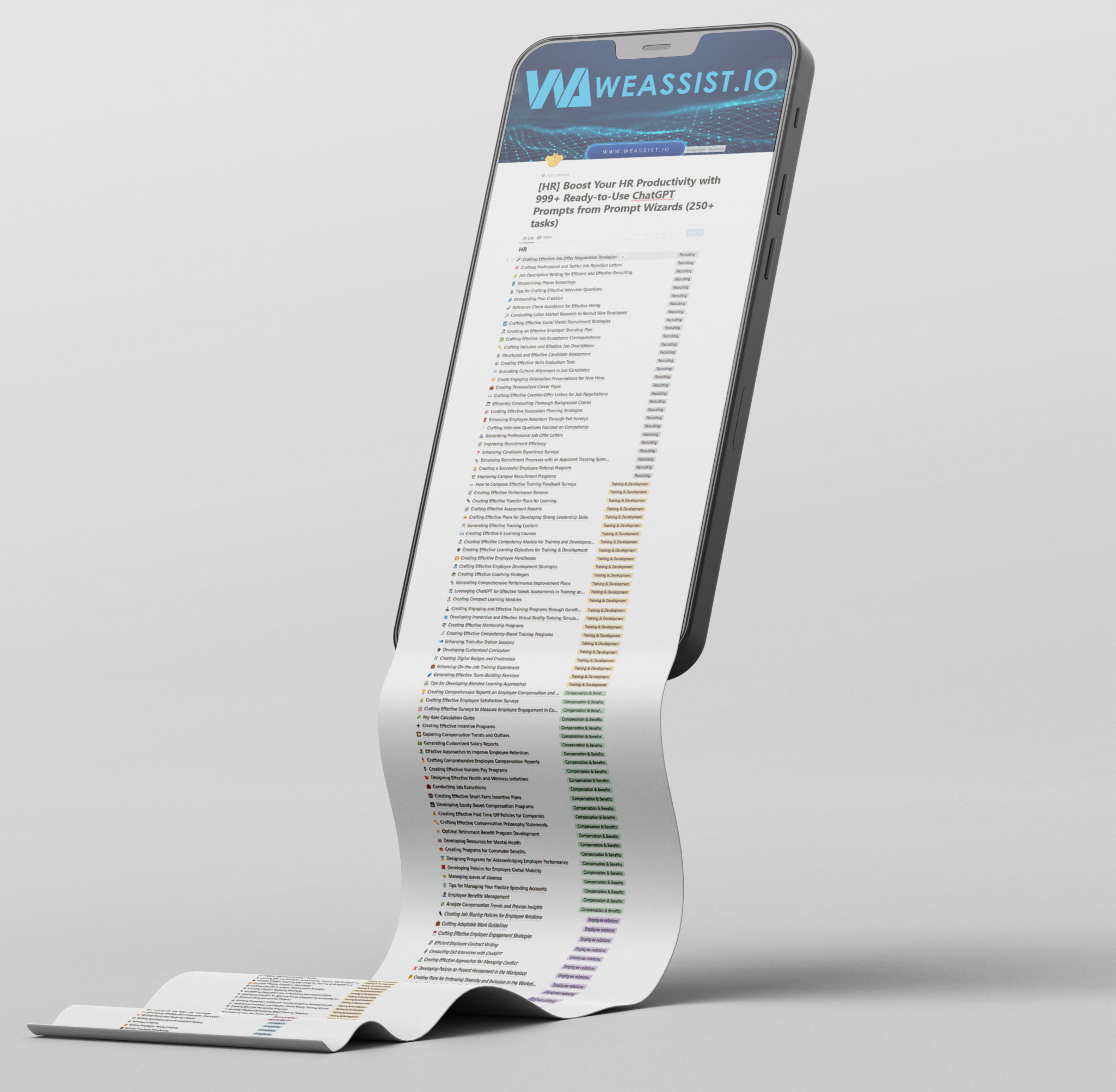 Stay ahead and manage your talent effectively. Our HR Prompt Pack is your secret weapon for optimizing your HR processes and fostering a thriving workplace.