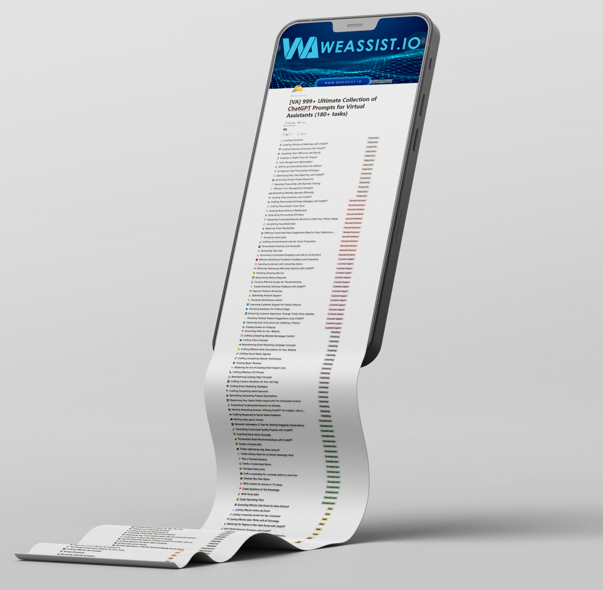 Ready to be a highly effective virtual assistant? Tackle challenges with confidence. Our prompts provide creative solutions to common virtual assistant dilemmas, empowering you to overcome obstacles seamlessly.